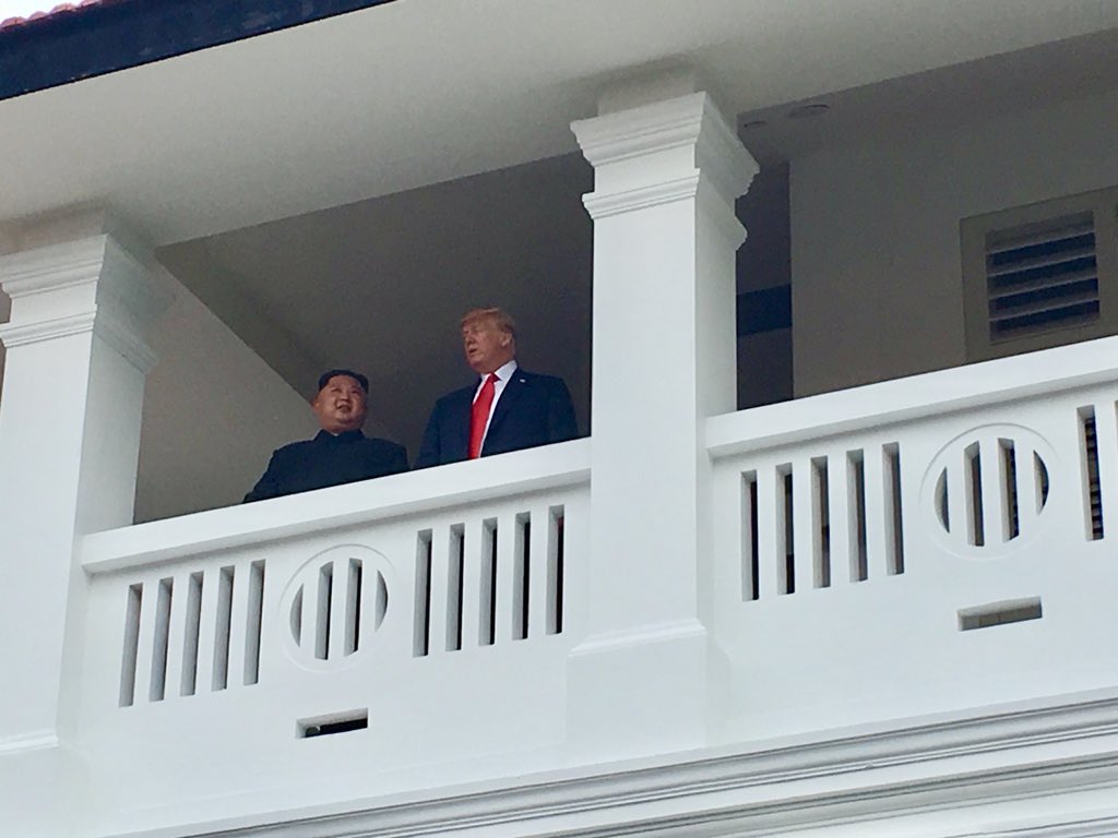 .@POTUS and Leader Kim Jong Un on balcony after finishing the one on one. #SingaporeSummit pic.twitter.com/kRiDpRiEq6